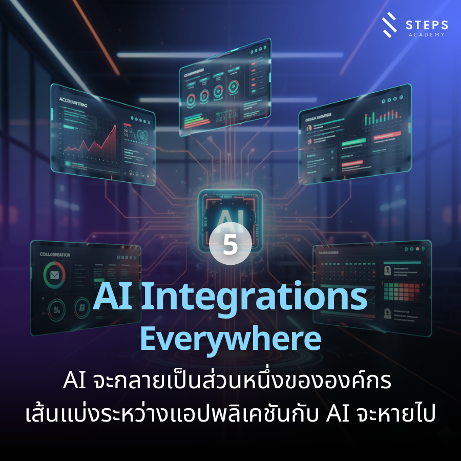 AI จะฝังอยู่ในทุกระบบที่องค์กรใช้งานอย่างแนบเนียน (Embedded AI) ทำให้เส้นแบ่งระหว่างแอปพลิเคชันเดิมกับ AI แทบจะหายไป