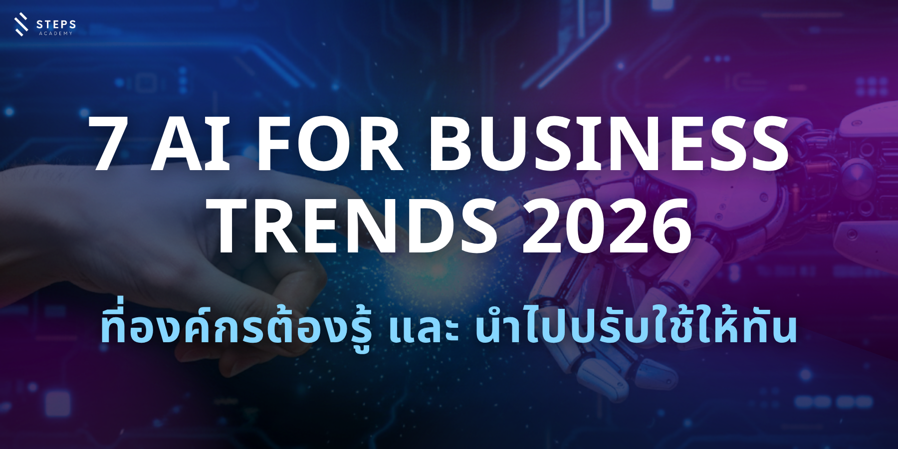 ต่อไปนี้คือ 7 เทรนด์ AI สำคัญสำหรับธุรกิจ ในปี 2026 ที่ผู้นำองค์กรและผู้บริหารต้องรู้และวางแผนรับมือให้ทัน