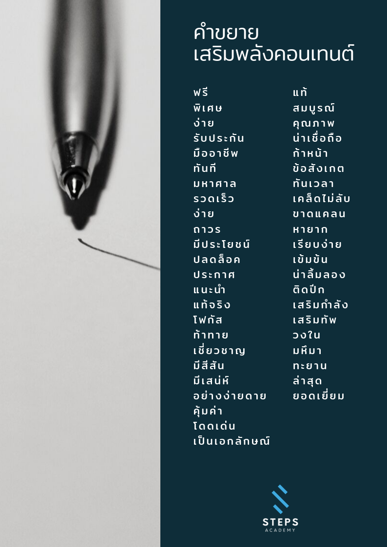 อย่าลืมค้นหาคำใหม่ๆ น่าสนใจ เหมาะกับสินค้าและบริการของคุณ มาใช้เสริมทัพการเขียนให้ผลิตภัณฑ์น่าซื้อมากขึ้นนะคะ